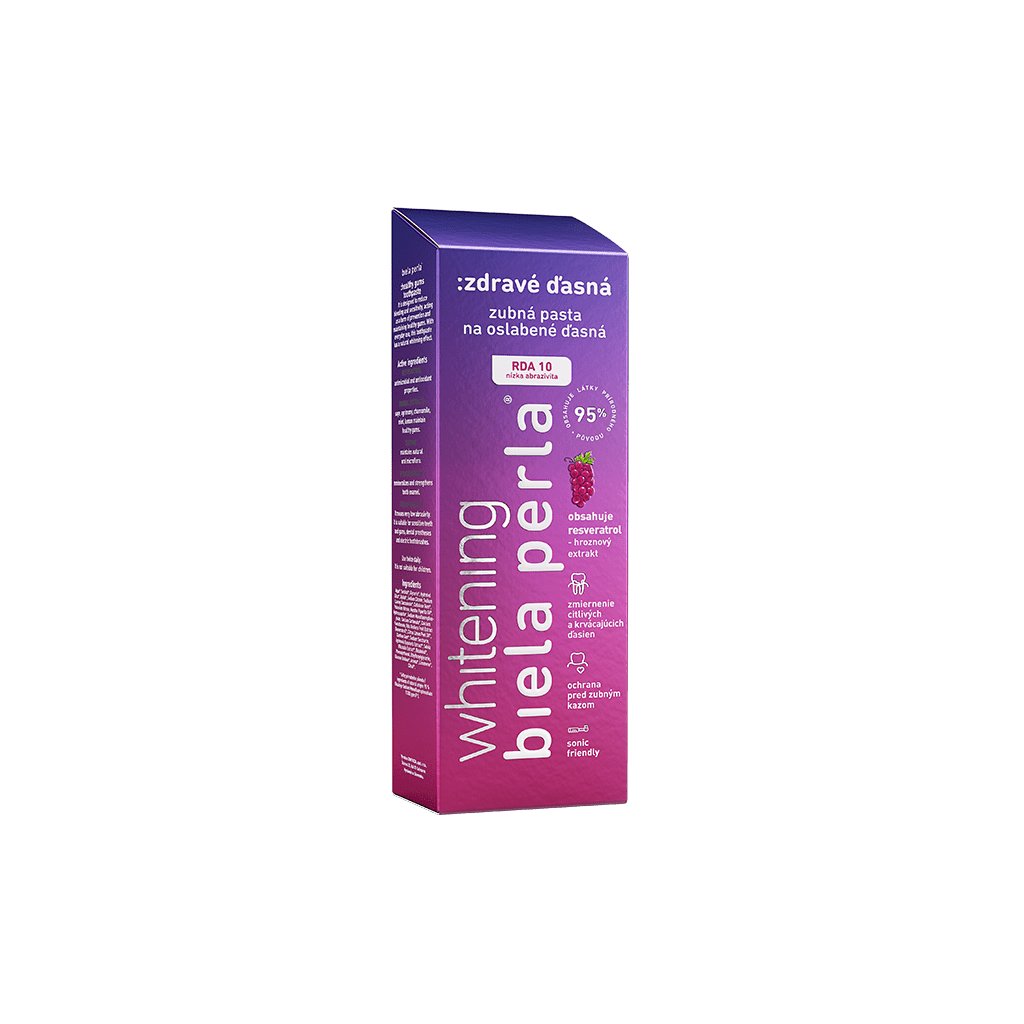 Zubní pasta obsahuje hroznový extrakt – resveratrol a účinné bylinné extrakty, které pomáhají zmírnit příznaky paradontózy, citlivých a krvácejících dásní.Také působí jako prevence udržení zdravých dásní.