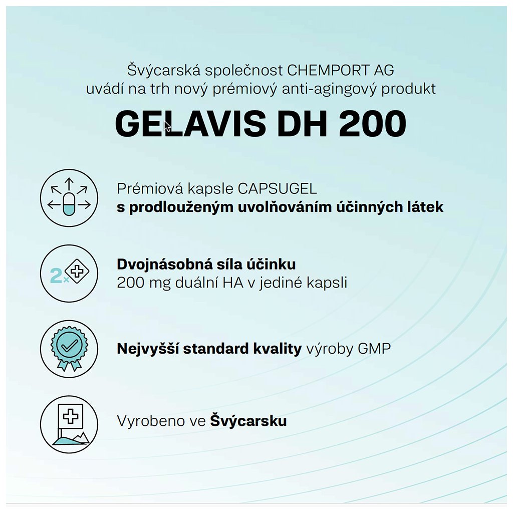 Gelavis Dual Hyaluronate představuje revoluci v oblasti výživových doplňků s kyselinou hyaluronovou. Tento prémiový švýcarský produkt obsahuje 200 mg duální HA v jediné kapsli s prodlouženým uvolňováním – a tím přináší dvojnásobný účinek oproti běžným doplňkům. Vyrobeno podle nejpřísnějších GMP standardů a určené pro všechny, kdo chtějí podpořit krásu, pohyb i zdraví zevnitř.
