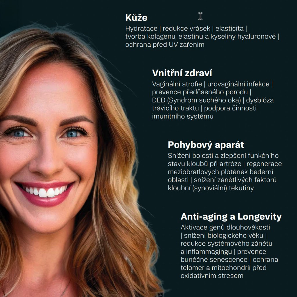 Ulevuje při vaginální atrofii, pomáhá řešit urogyn. potíže, přispívá k prevenci předčasného porodu a zlepšuje stav při syndromu suchého oka. Harmonizuje střevní mikrobiom a podporuje imunitní funkce.