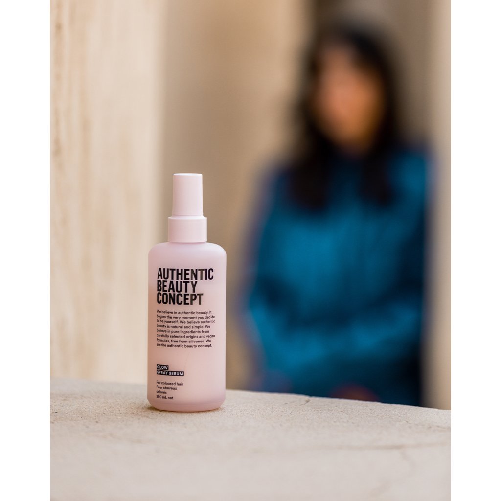 Toto Rozjasňující sérum ve spreji AUTHENTIC BEAUTY CONCEPT Glow spray serum 200 ml s posílenou UV ochranou chrání vlasy před poškozením způsobeným slunečním zářením. Je obohaceno o hlubokomořský vodní ferment a rubínovou řasu, která je známá tím, že posiluje vlasové vlákno a chrání vlasy před znečištěním.