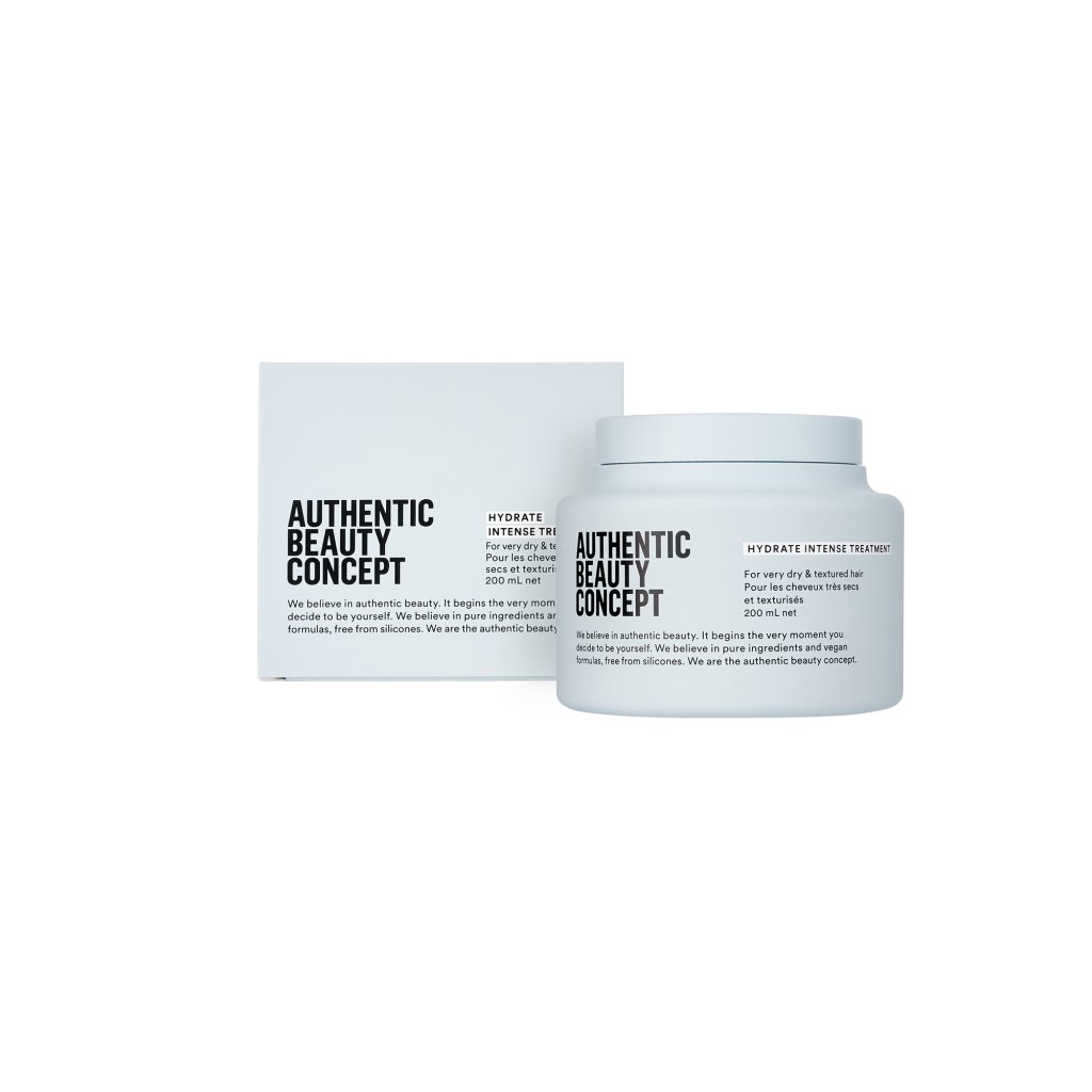 Hydratační intenzivní kúra AUTHENTIC BEAUTY CONCEPT Hydrate Intense Treatment 200 ml. Je to intenzivně hydratační ošetřující maska, která zvyšuje poddajnost a zvyšuje přirozený lesk.