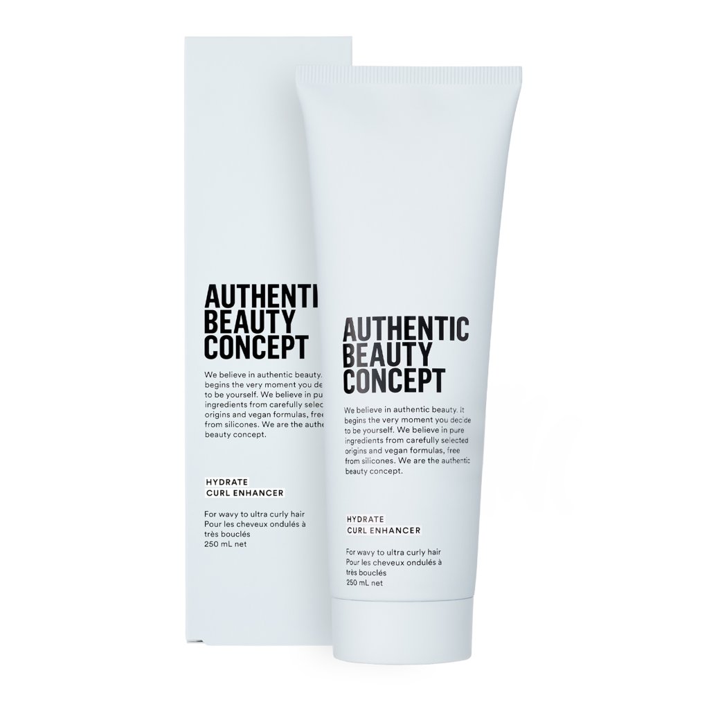 Hydratačný zvýrazňovač vln AUTHENTIC BEAUTY CONCEPT Hydrate Curl Enhancer 250 ml.Je to lehký gel, který se neoplachuje, s pružným držením, který zlepšuje definici zvlnění, snižuje krepatění a poskytuje ochranu proti vlhkosti.