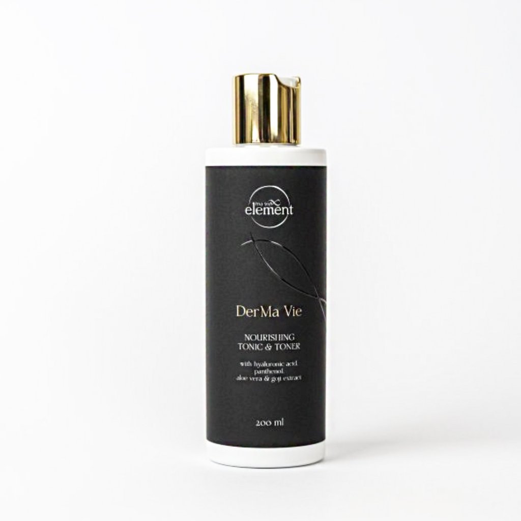 Vyživující tonikum a toner z řady DerMa Vie zklidňuje, regeneruje a chrání pleť, zároveň podporuje její přirozenou rovnováhu a svěžest. Používání tonika a toneru s kyselinou hyaluronovou, panthenolem, aloe vera a extraktem z goji přináší pleti hloubkovou hydrataci, regeneraci a zpomaluje proces stárnutí. Kyselina hyaluronová udržuje vlhkost v pokožce, panthenol a aloe vera ji zklidňují a podporují hojení, zatímco extrakt z goji bohatý na antioxidanty chrání pleť před volnými radikály a podporuje tvorbu kolagenu. Díky jemné exfoliaci kyselinou mléčnou a citronovou pomáhá tonikum vyrovnávat pH pokožky a zlepšuje vstřebávání dalších pečujících produktů.