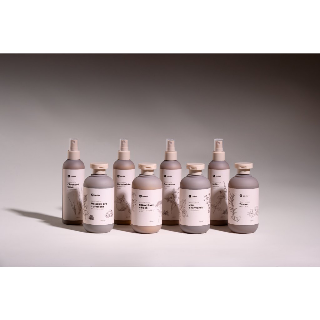 Aqua, Disodium Cocoamphodiacetate, Disodium Cocoyl Glutamate, Dimethyl Sulfone, Glycerin, Decyl Glucoside, Sodium Chloride, Equisetum Arvense Stem/Flower Extract, Inulin, Juniperus Communis Fruit Oil, Sodium Cocoyl Glutamate, Xanthan gum, Malachite Extract, Sodium Benzoate, Potassium Sorbate, *Limonene, *Eugenol (součást esenciálního oleje)