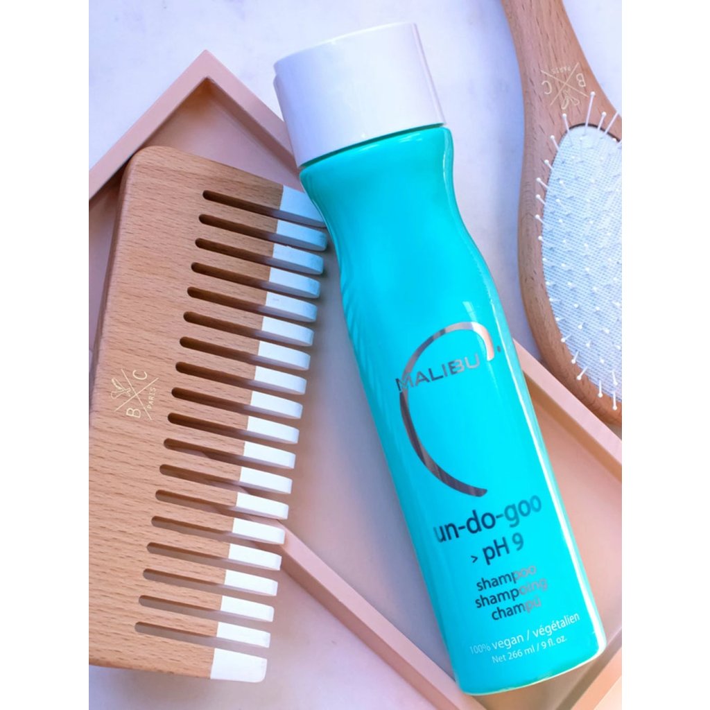 Čistící šampon Malibu Un-Do-Goo Shampoo 266 ml je 100% veganský a šetrný šampon, který vyniká jemnou bezsulfátovou technologií, jenž zajišťuje perfektní čištění a odstranění zbytků stylingových produktů z vlasů. Obsažené vitamíny pak dodávají hydrataci a zajišťují lesk, hebkost a poddajnost vlasů. Příjemný zážitek při mytí vlasů ještě podporuje smyslná a sladká vůně pomerančové kůry a vanilkového lusku.