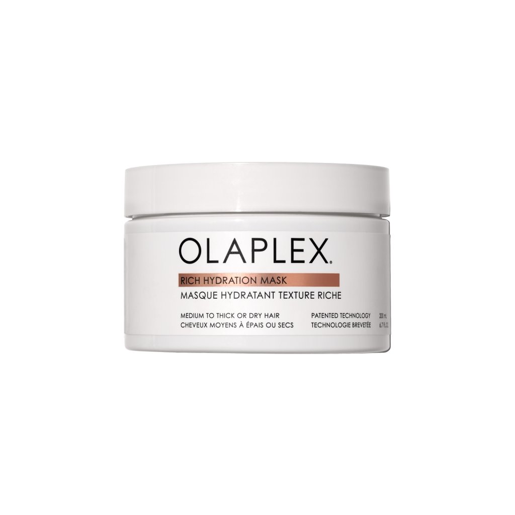 Intenzivní maska Olaplex Rich Hydration Mask 200ml pro suché a středně silné až hrubé vlasy, která uzavírá vlasovou kutikulu, hydratuje a bojuje proti krepatění.