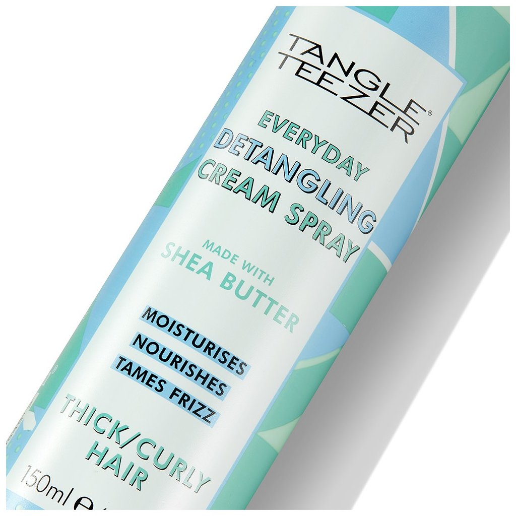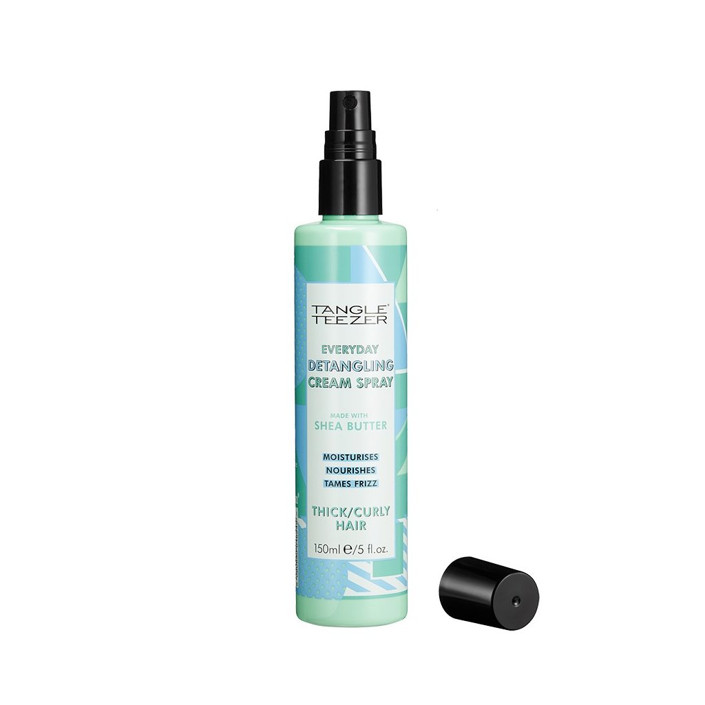 Sprej s krémovou konzistencí Everyday Detangling Cream Spray Tangle Teezer® 150 ml obsahuje bambucké máslo a skvěle pomáhá při rozčesávání hrubých kudrnatých vlasů bez tahání a lámání. Vlasy vyživuje, hydratuje a zanechává je jemné a hebké, přičemž nezanechává zbytky. Stačí nastříkat na vlhké nebo suché vlasy, poté pročesat.