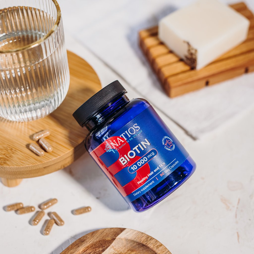 Biotin hraje klíčovou roli v růstu a posílení vlasů a pokožky. Pravidelný příjem tohoto vitamínu podporuje regeneraci vlasových folikulů, zlepšuje pevnost nehtů a přispívá k hydrataci a regeneraci pokožky.